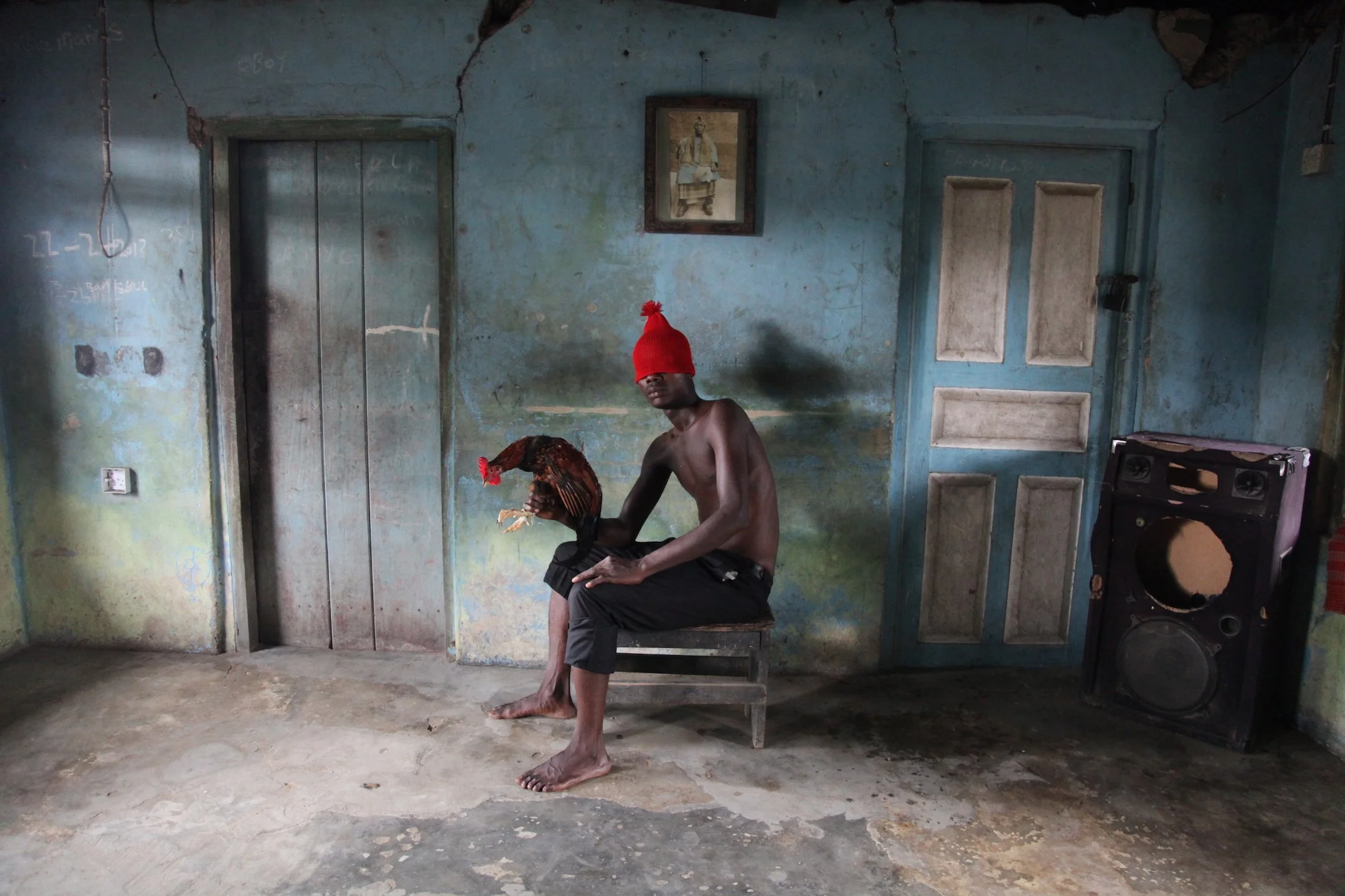 “These Invisible Boy photographic works are still revealing their meanings to me. It was a very aesthetic exercise. There was nothing anthropological guiding me here. Because this was about the man behind the mask. The spirit behind the proceedings. A new, acultural prospect. This photographic series is the beginning of an investigation into this invisible realm that informs so much of Ogoni life. I was very much led by aesthetic choices in this series. I didn’t know why I was choosing to go where I was going but I just did it because it felt right and had a visual potency. It was only afterwards that I started to discover the significance of the things I was drawn to. The symbolism of the chicken that I decided to incorporate for no apparent reason. The power and history of the extraordinary tree I photographed him in. This submission to aesthetics has led to a greater understanding of Ogoniland and the spiritual realm. The information is actually within the beauty and beauty actually has significance and meaning embedded in it.