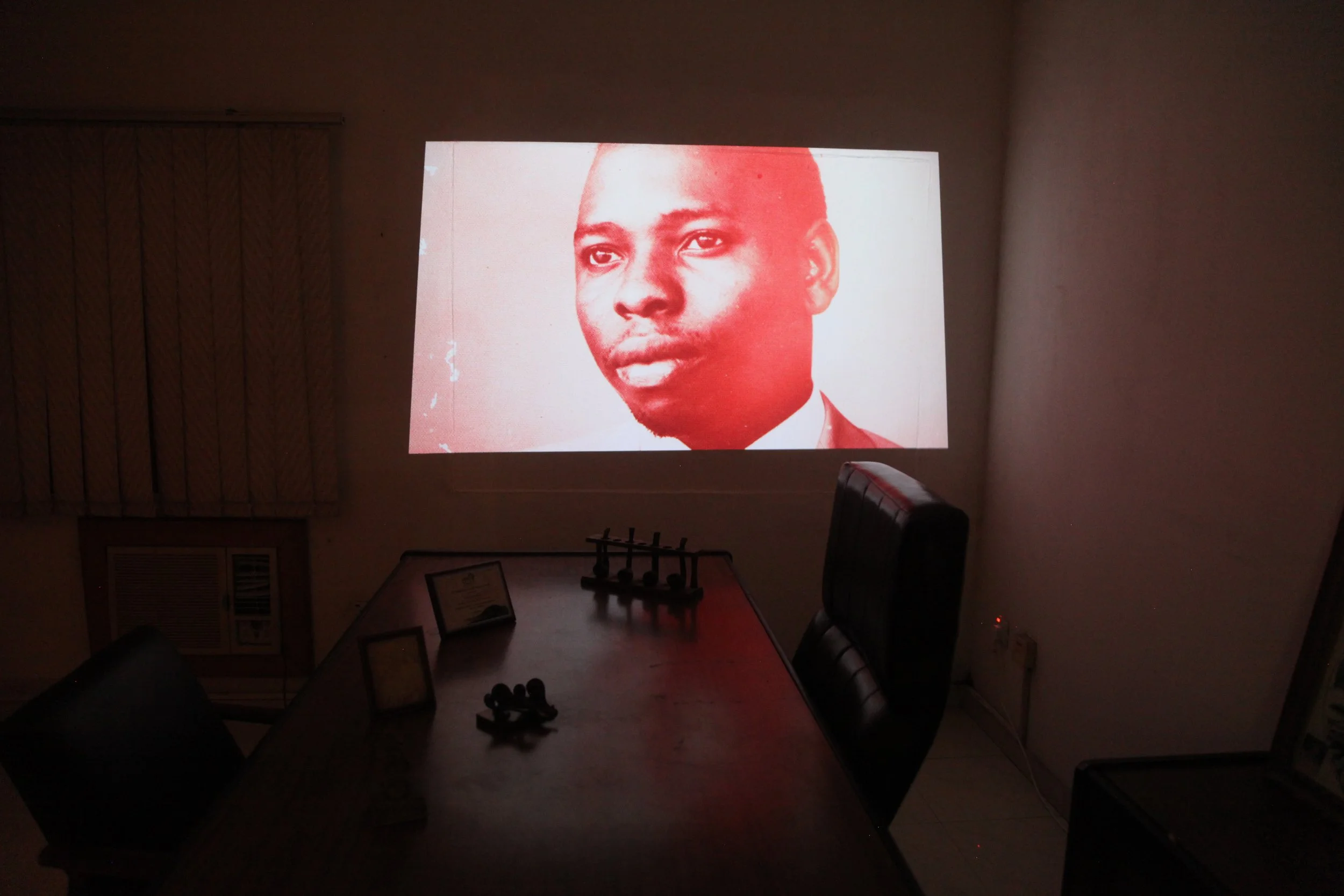 The gallery is situated in the old Aggrey Road offices of the late writer, activist and Nobel-Nominee, Ken Saro-Wiwa, in Port Harcourt, the capital of the country’s oil industry. Boys’ Quarters Project Space is made up of two small gallery spaces, a reading room and Ken Saro-Wiwa’s actual office which is now a miniature museum site hosting projected video installation works relating to Ken’s legacy as well as videos that speak to the very nature of memory. Called the Windowall gallery works are projected onto the wall where he once looked out and observed the crowds.